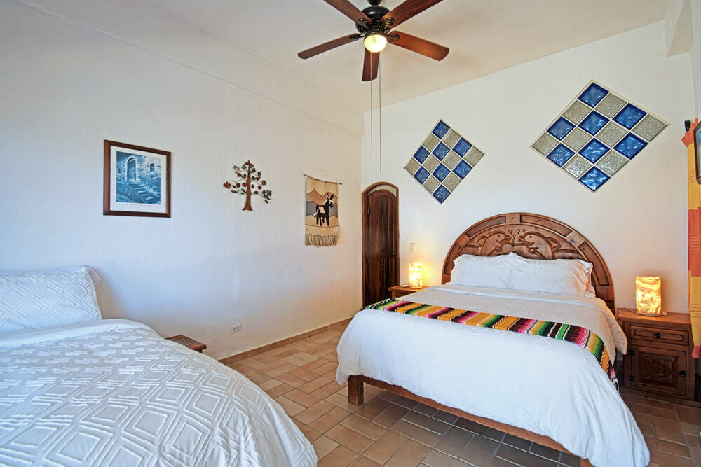Habitación frente al mar con diseño funcional y vista directa al océano. Equipada con aire acondicionado, una cama queen y una cama individual. Ideal para parejas o amigos.