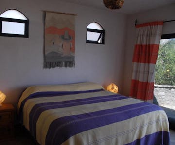 Room with partial ocean and garden views, equipped with a king-size bed. Easy access to the restaurant and private entrance. Includes a terrace, ideal for guests seeking comfort and a convenient location.